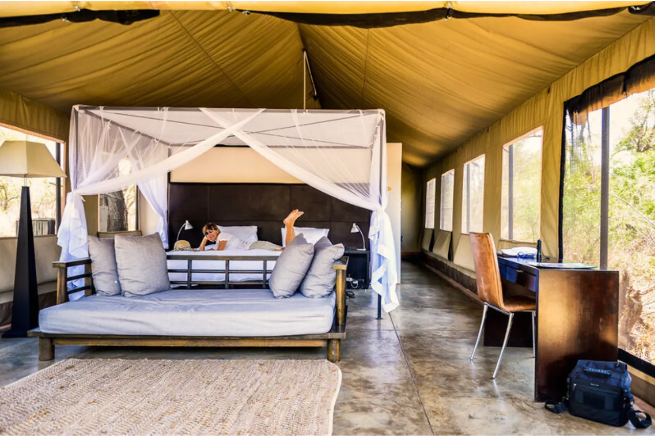 Campen ligger vakkert til og gir en herlig følelse av å bo midt i naturen. Overnattingsstedet består av 15 romslige telt, innredet i en moderne og komfortabel stil med ekte senger, king-size-senger og private bad, slik at du kan nyte safarifølelsen uten å gå på kompromiss med komforten.