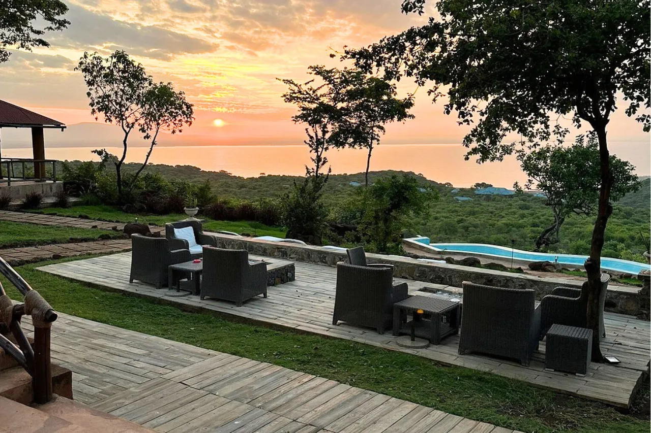 Hvert rom er smakfullt innredet i en stil som kombinerer moderne design med tradisjonelle afrikanske preg. Her kan du våkne opp til naturens lyder og ha en avslappende kveld. Dette er et perfekt hotell å bo på for dagen før du begir deg ned i Ngorongoro-krateret.