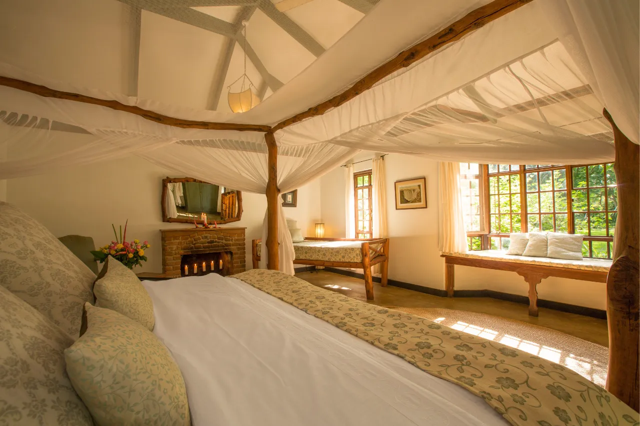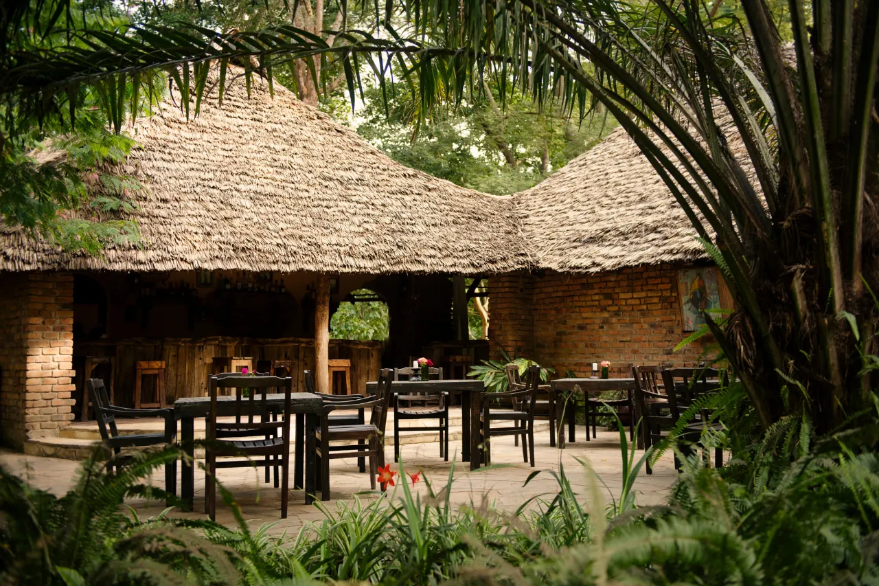 Hotellet har en rislende elv som renner langs den ene siden av eiendommen. Det er et sted som er skapt for total avslapning og et flott sted å lande etter en safari. I hagen kan du ofte se både fugler og små aper som beveger seg fritt, noe som bidrar til den fredelige atmosfæren.