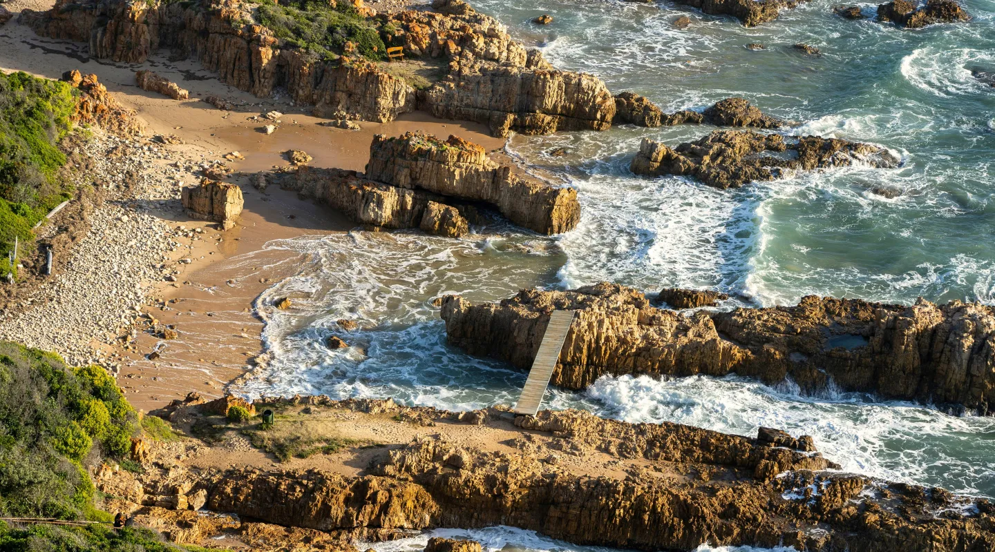 Knysna er omgitt av et variert landskap med lagune, skoger, fjell og kyst. I den store lagunen kan du dra på båtturer, padle kajakk eller gå langs vannet. De ikoniske Knysna Heads markerer åpningen til Det indiske hav og tilbyr vakre utsiktspunkter der klippene møter havet. Området inkluderer også Knysna Forest, en tett og grønn skog med turstier og et rikt fugleliv.